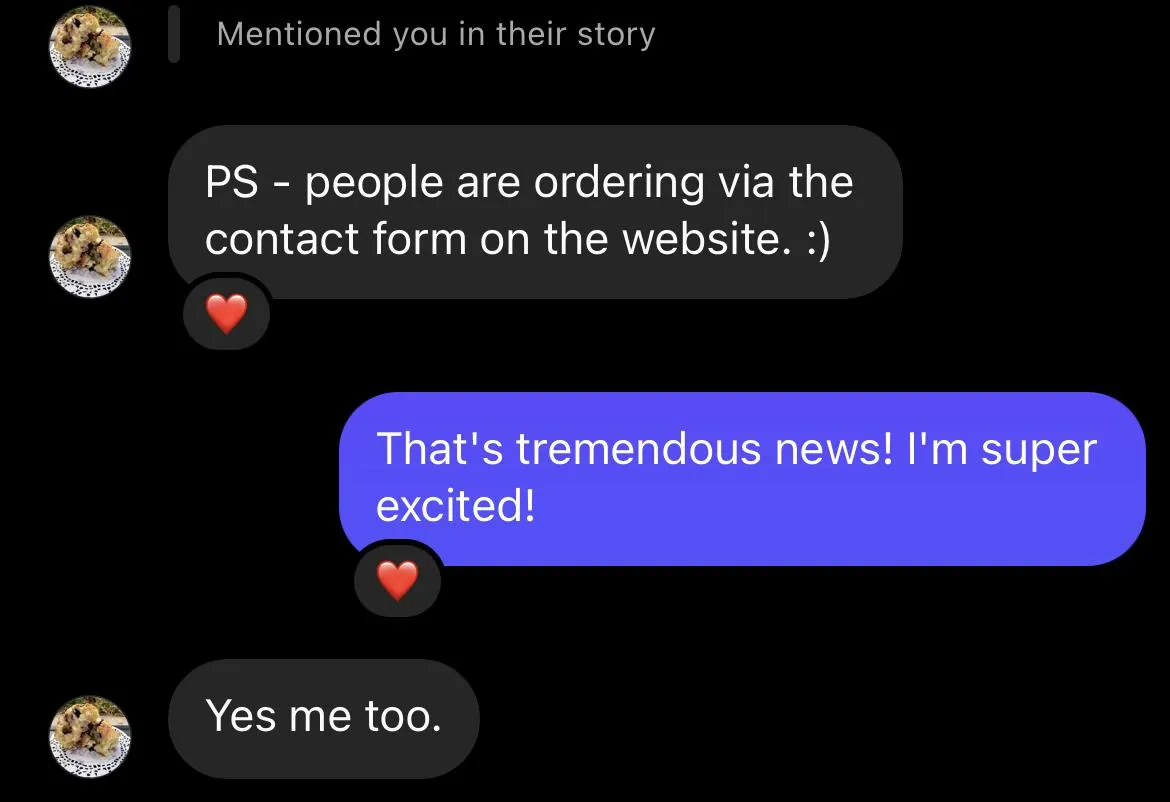 She was looking for online marketing assistance since she was receiving orders through instagram and wanted to have a way to funnel all of the people who were looking to order into one area. It's one thing to simply build a website... it's another thing to have people order from it. So, we came up with a solution. Let's operate more like e-commerce than regular retail!