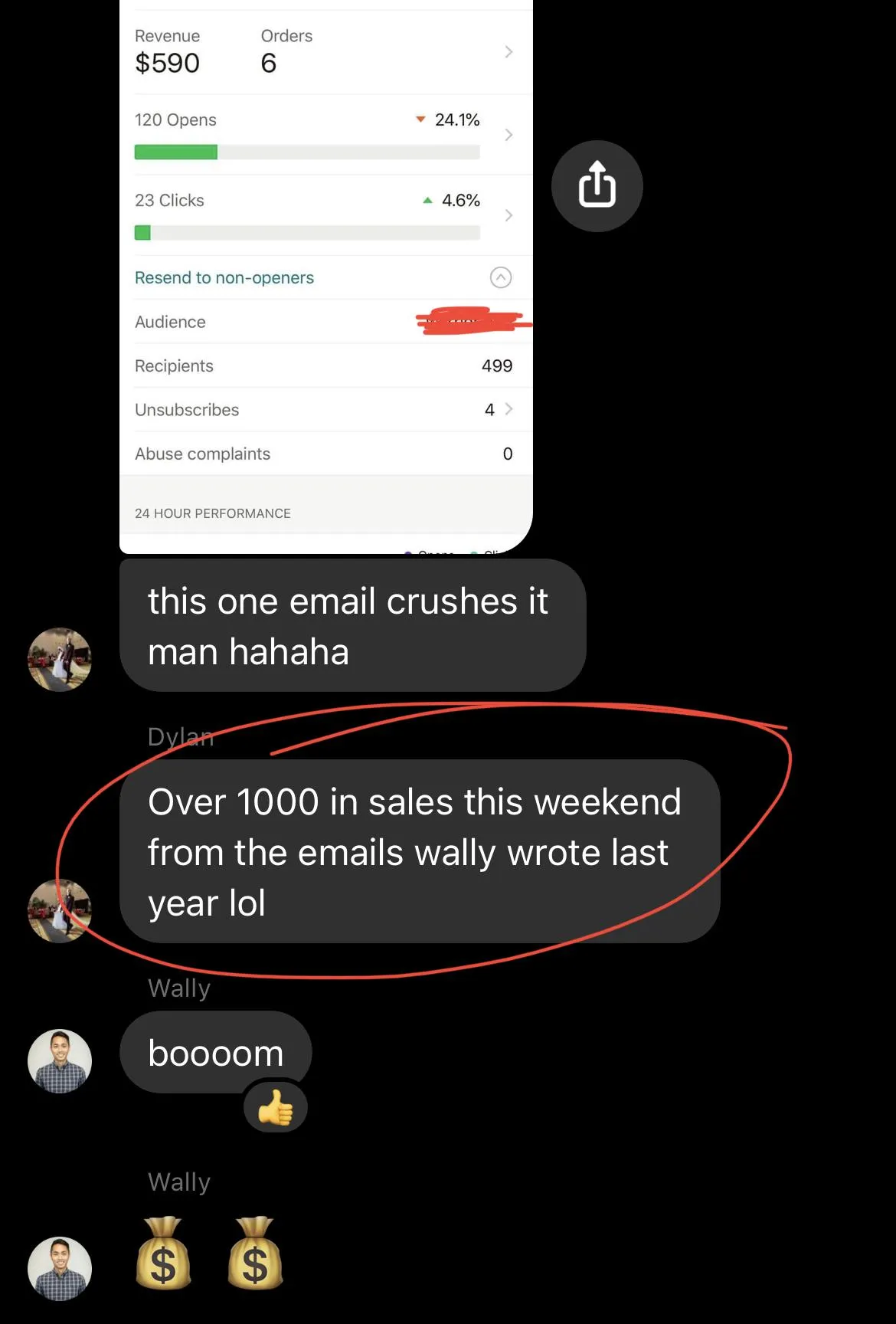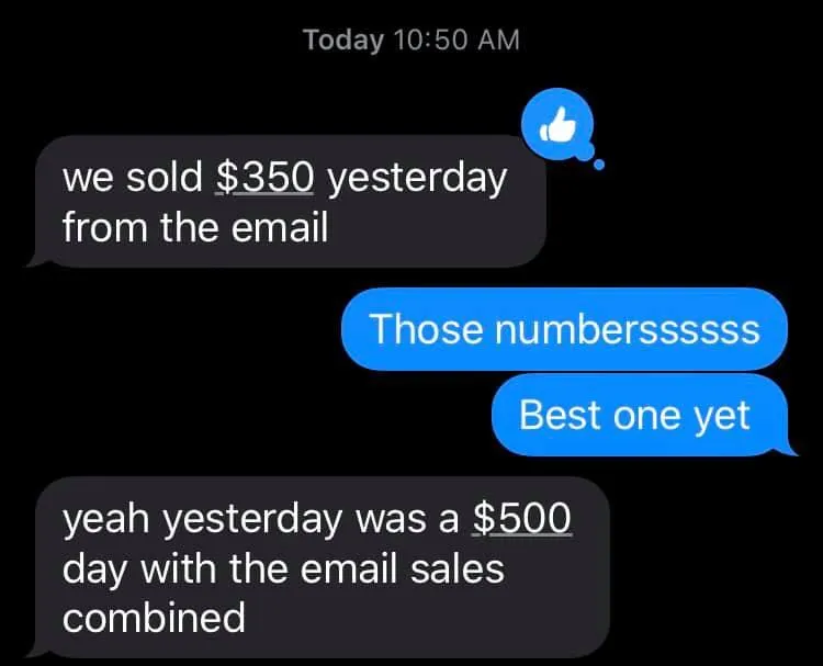 (Here's a screenshot of a text we received from one of our parners