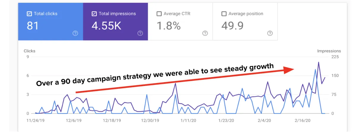 (Here's a screenshot showing the online organic growth over 90 days....)